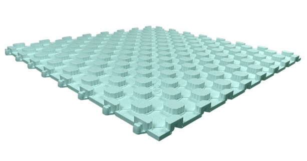 Système intégré de retenue de tubes : Panneau conçu pour plancher chauffant hydronique, permet l’insertion de tuyaux 1/2″ ou 5/8″, facilite la pose de tubulure sous dalle