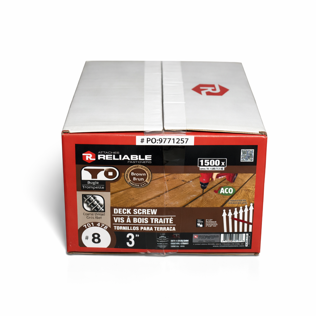 La vis à bois traité brun no 8 de 3″ est conçue pour les assemblages de taille moyenne dans le bois traité et autres bois extérieurs. Sa longueur de 3″ permet une fixation solide et fiable pour les terrasses, cadres, clôtures et autres structures de bois moyen. Offerte en caisse de 1500 unités, elle est idéale pour les chantiers résidentiels ou commerciaux nécessitant constance et efficacité dans l’installation.