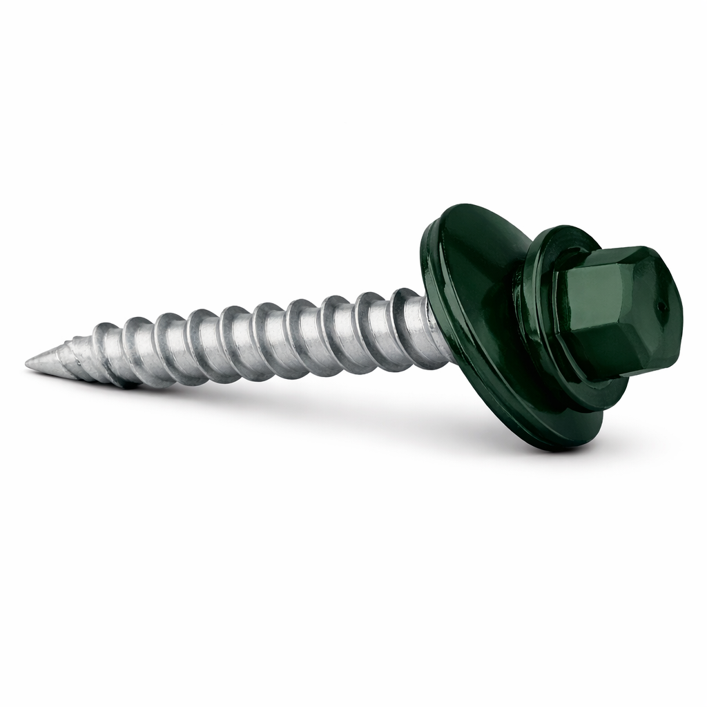 Sur le chantier, cette vis à tôle est idéale pour fixer des panneaux métalliques, solins, accessoires de ventilation et composants décoratifs extérieurs. Elle convient aux entrepreneurs, installateurs et bricoleurs recherchant une fixation solide, facile à installer et esthétiquement cohérente avec les matériaux extérieurs verts ou naturels. Son format polyvalent en fait un choix pratique pour tous types de projets de construction et de rénovation.