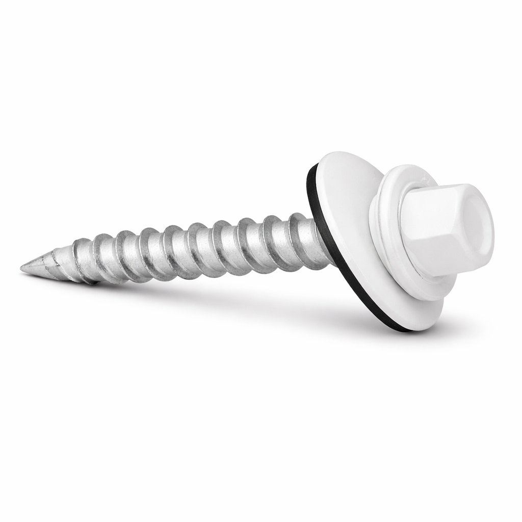 Vis à tôle #9 x 1″ blanc OS 8317 acier galvanisé tête hexagonale rondelle EPDM fixation métal bois toiture
