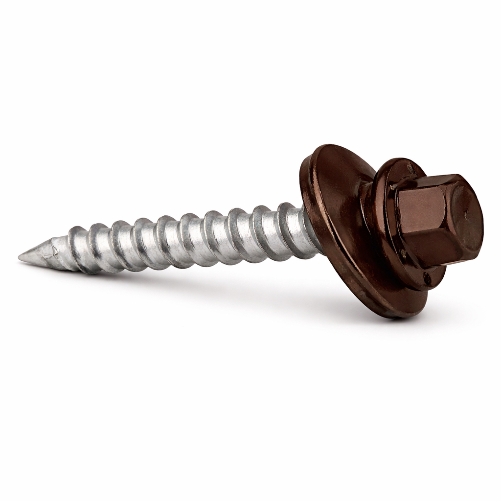 Vis à tôle #9 x 1″ brun métro 100 pièces acier galvanisé tête hexagonale rondelle EPDM fixation métal bois toiture